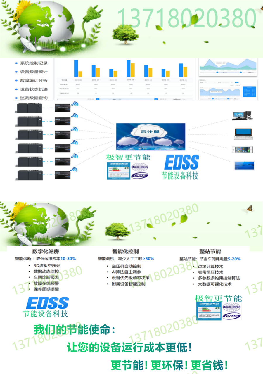 节能预期费用:可以在控制供气压力平稳的情况下改变空压机的产气量,避免频繁加卸载导致的能源浪费,提高空压机零部件的寿命,根据经验和现场工况得出的节能预期在10~30%。
